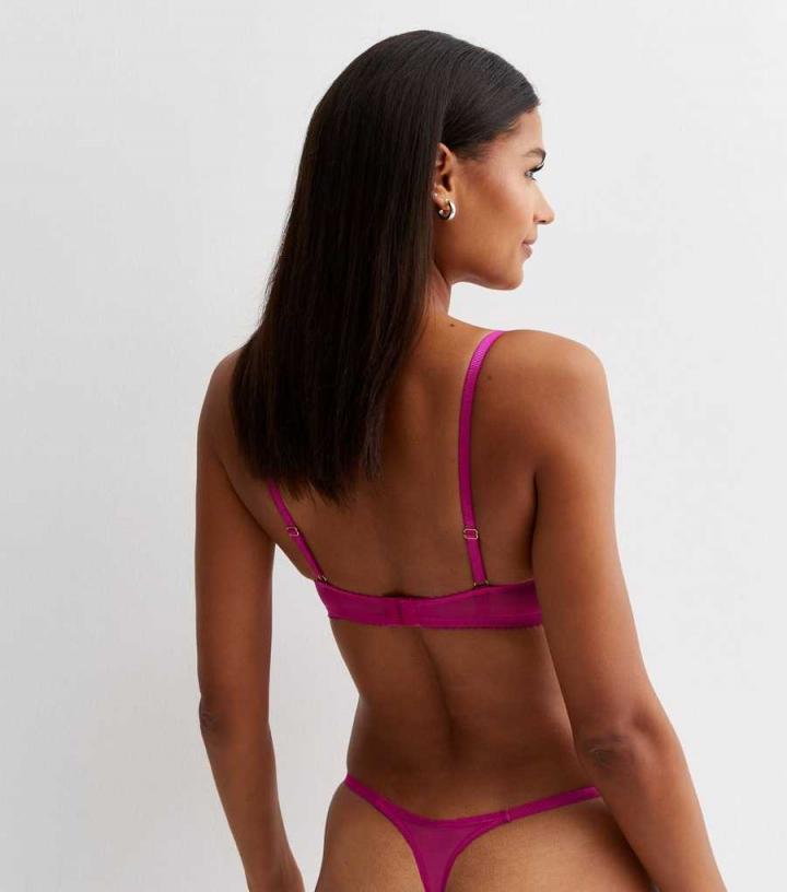 Give your lingerie collection a romantic touch with this bright pink embroidered trim thong. Coordinate with the matching bra.