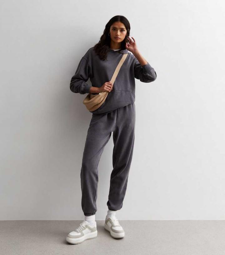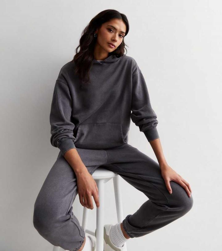 Co-ords | New Look Womens Dark Grey Acid Wash Hoodie