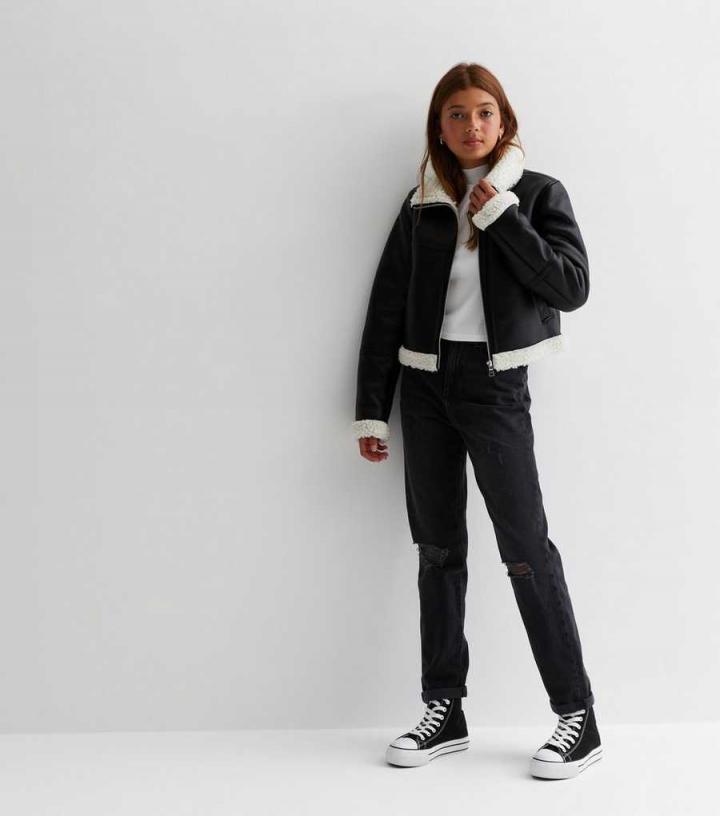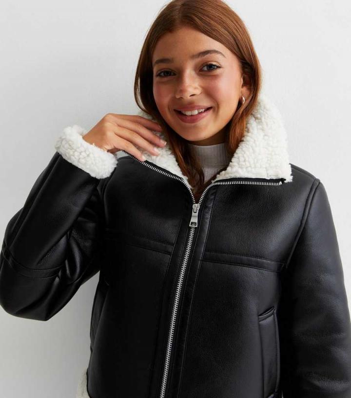 Girls. Every girl needs this style staple to hand on chilly days. Say ‘hi’ to this black aviator jacket, featuring a faux fur trim and made from a luxe leather-look fabric. It’s sure to be your next fave piece this autumn/winter.