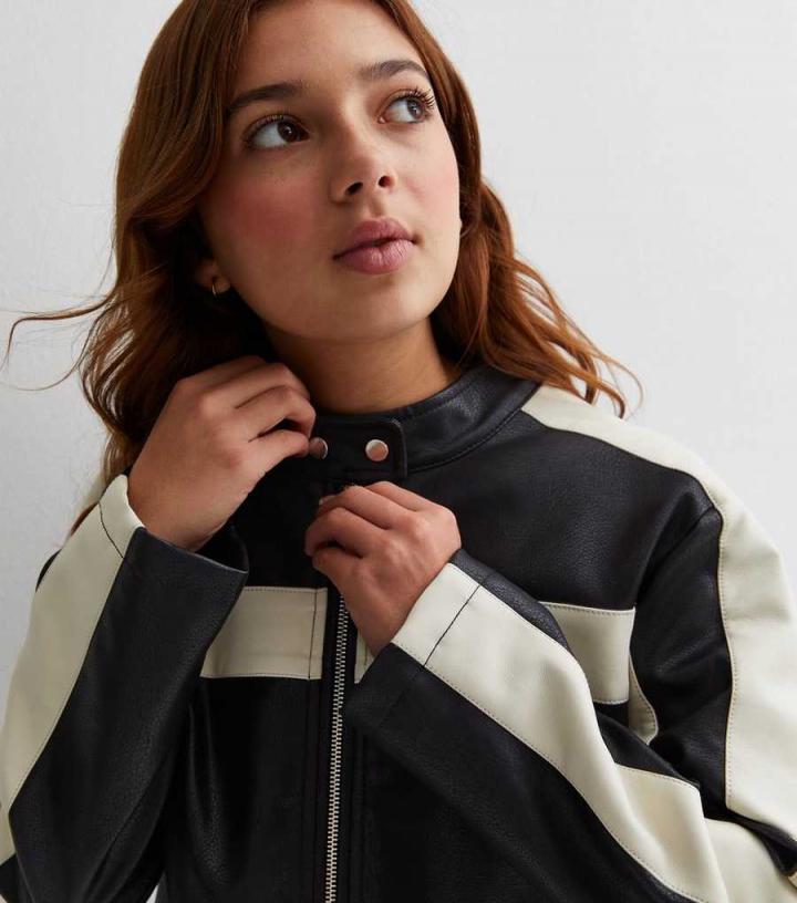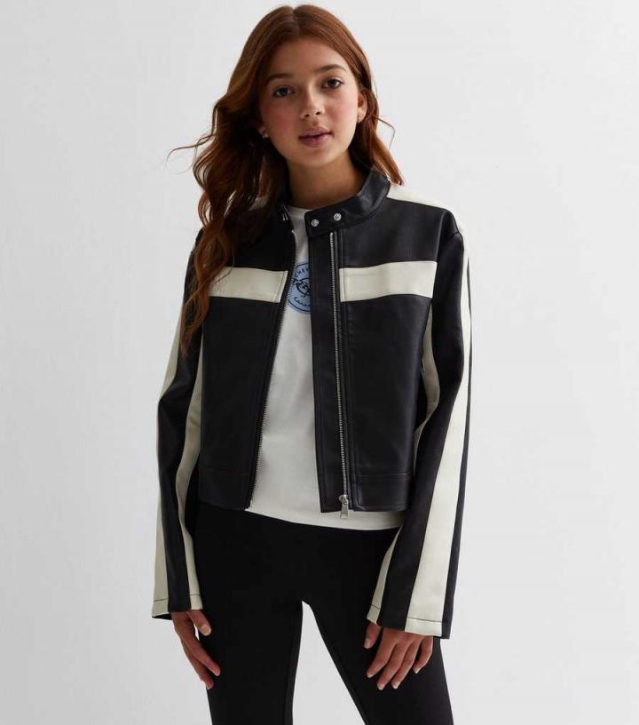 Coats & Jackets | New Look Girls Black Leather-Look Motocross Jacket