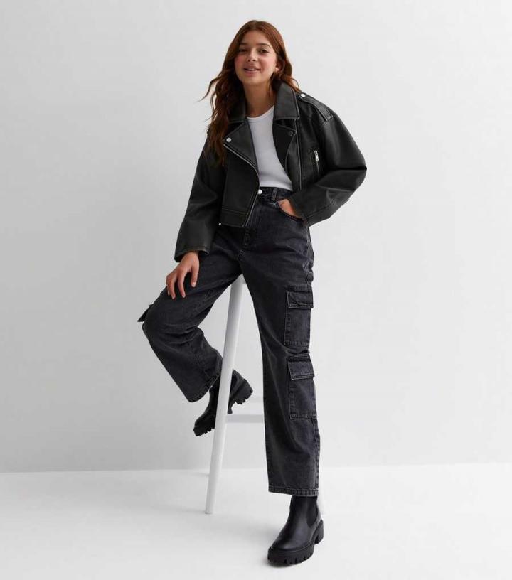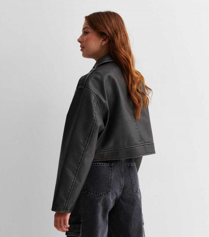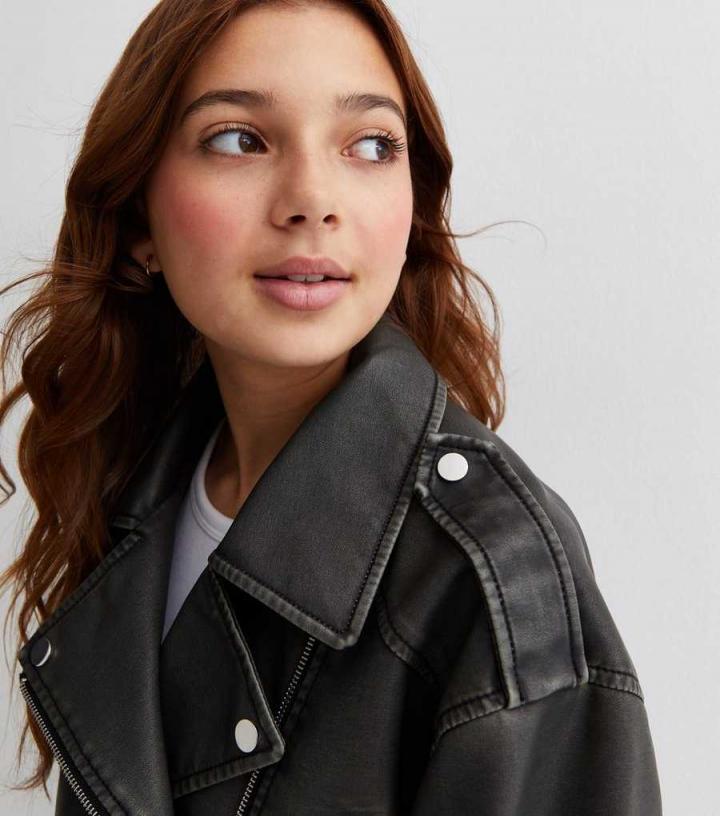 Coats & Jackets | New Look Girls Dark Grey Washed Leather-Look Jacket