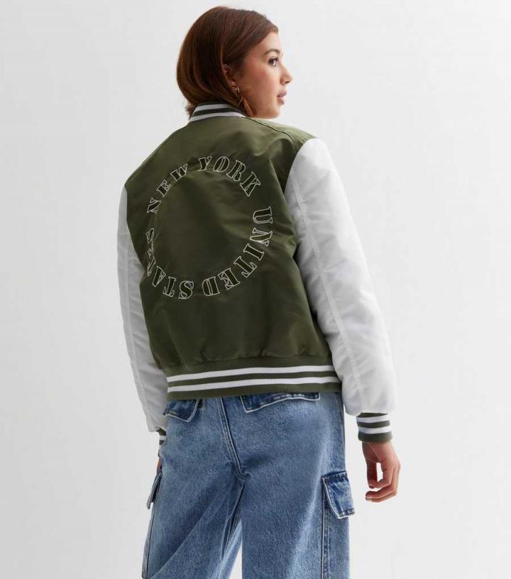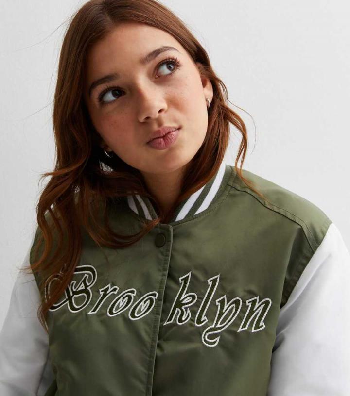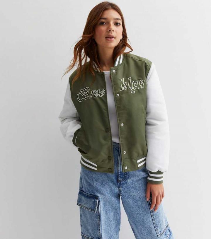 Coats & Jackets | New Look Girls Khaki Brooklyn Logo Varsity Jacket