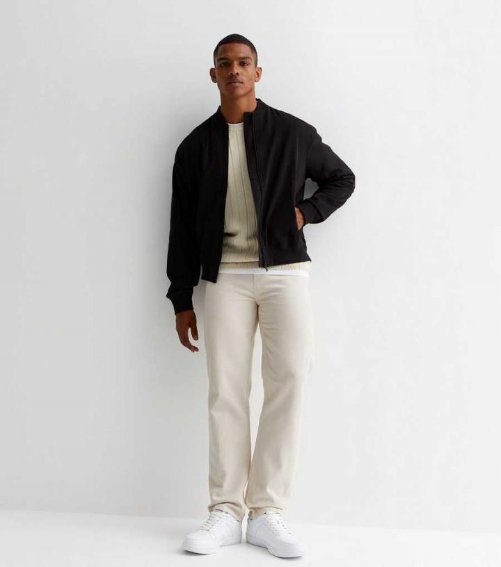 Mens Black Twill Bomber Jacket New Look…