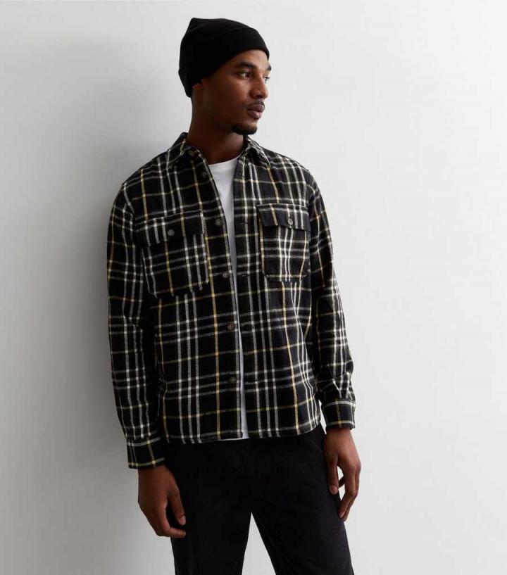 Coats & Jackets | New Look Mens Only & Sons Black Check Pocket Front Overshirt