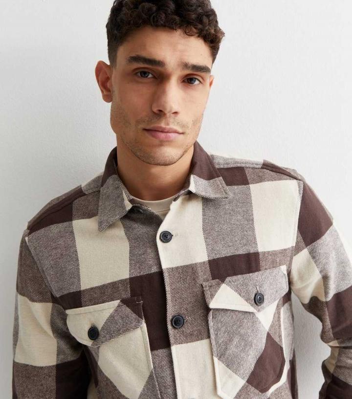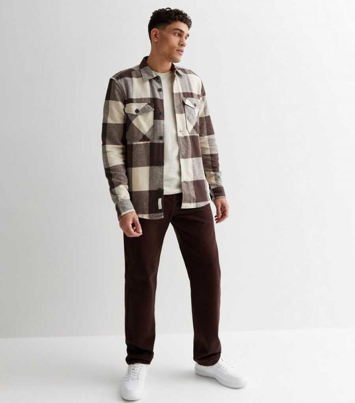 Mens Only & Sons Cotton Rust Check Overshirt New Look…