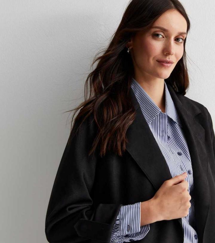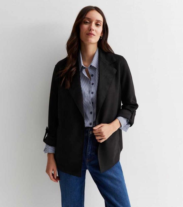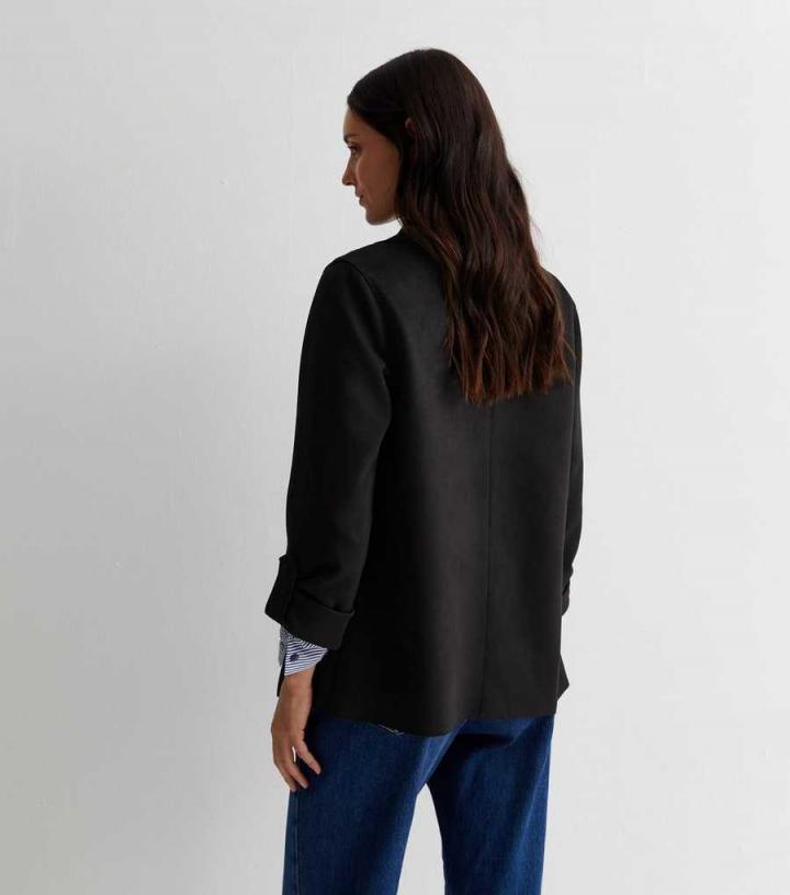 Designed in a chic suedette fabric, this black duster jacket is sure to be your new go-to evening layer. It looks just as good with a crop top and jeans as it does a blouse and leather-look leggings.