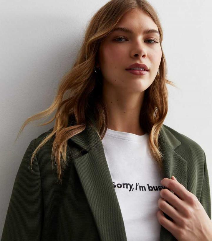 An office-to-out staple gets a cool twist with this khaki ribbed blazer. Its neutral hue is perfect for the new season, styling breezily with a graphic tee and trousers.