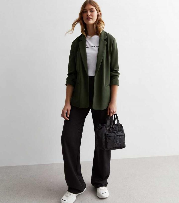 Contains recycled polyester*Find out more at newlook.com/uk/sustainability/materials- Revere collared neckline- Long roll sleeves- Side pocket detail- Ribbed woven fabric- Regular fit- Model is 5’9.5"/177cm and wears UK 10/EU 38/US 6