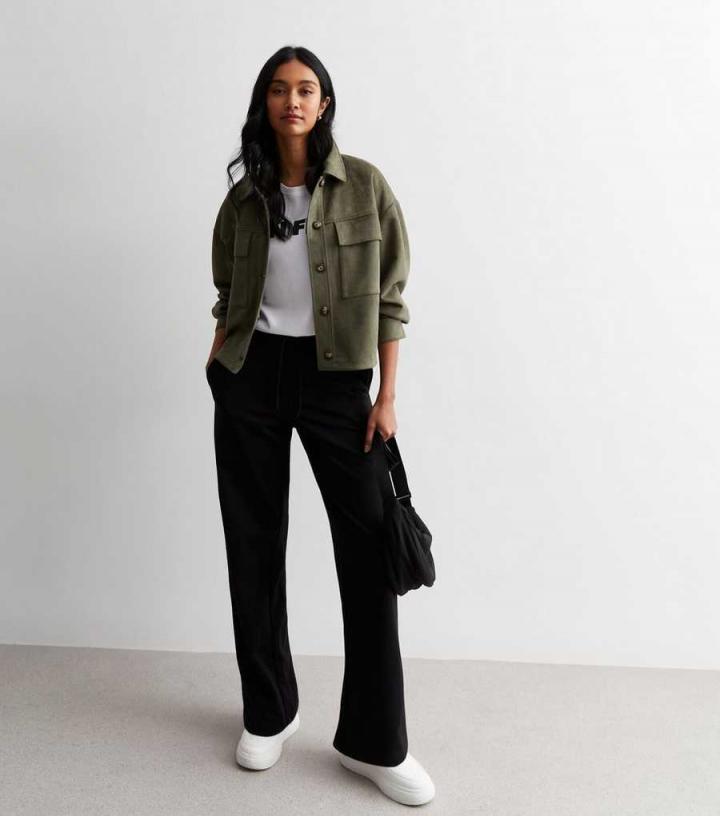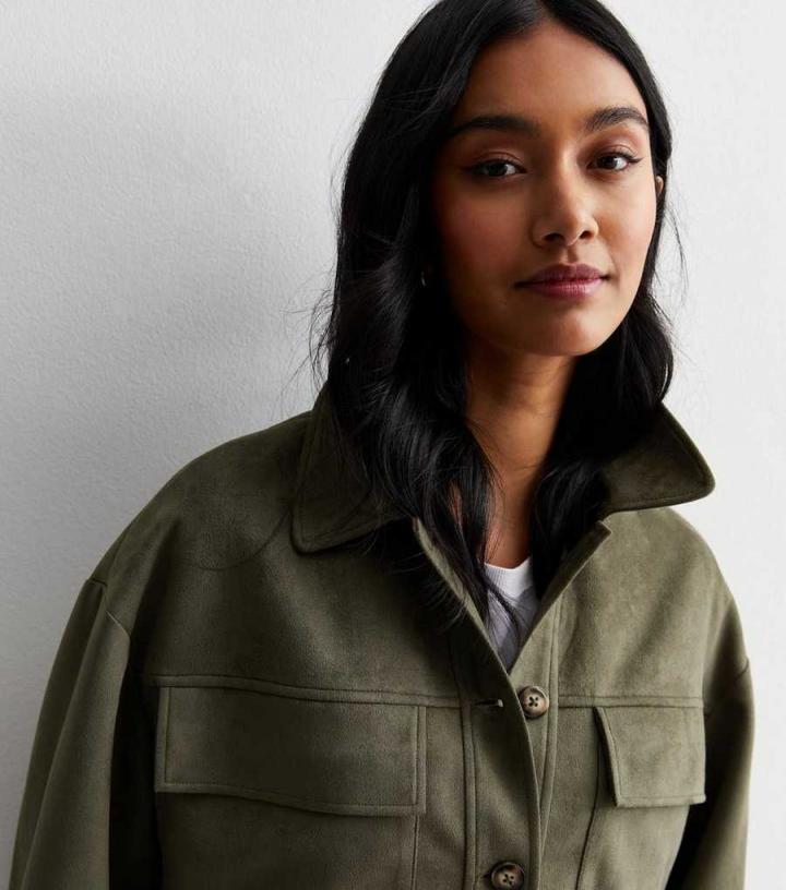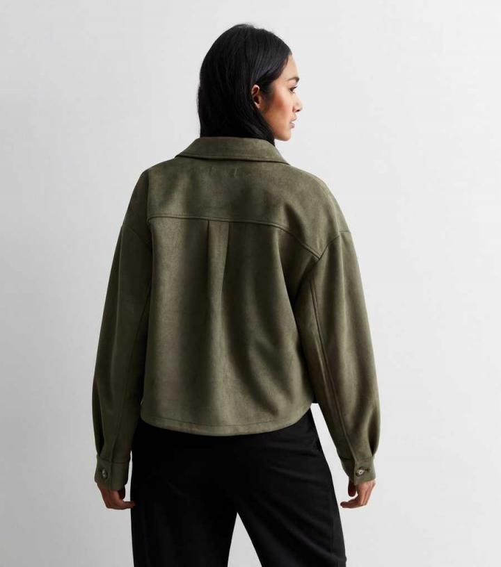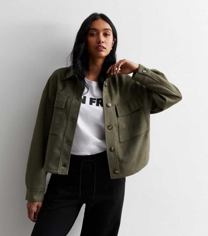 Coats & Jackets | New Look Womens Olive Suedette Cropped Shacket