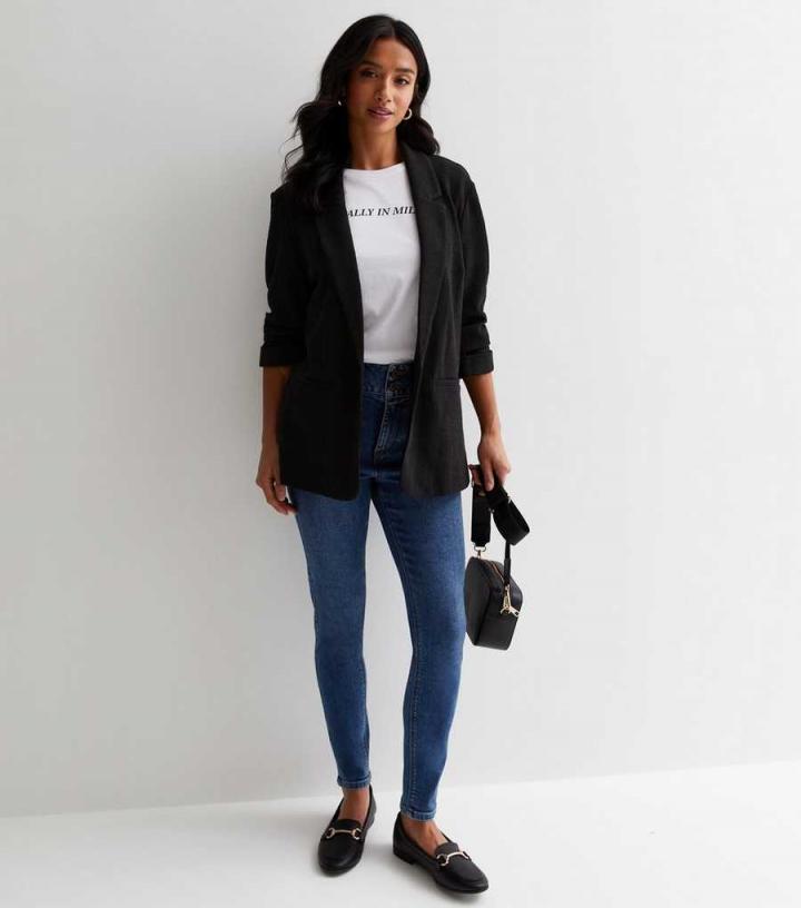Coats & Jackets | New Look Womens Petite Black Textured Stretch Jersey Blazer