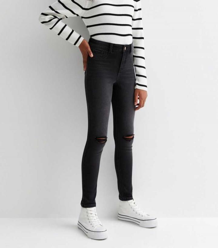 Denim | New Look Girls Black High Waist Ripped Knee Hallie Super Skinny Jeans