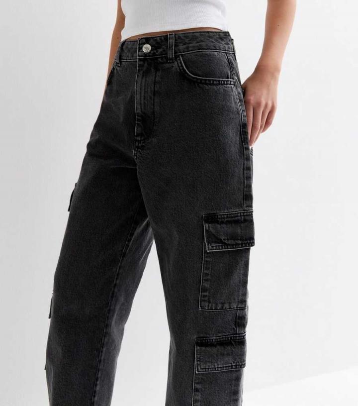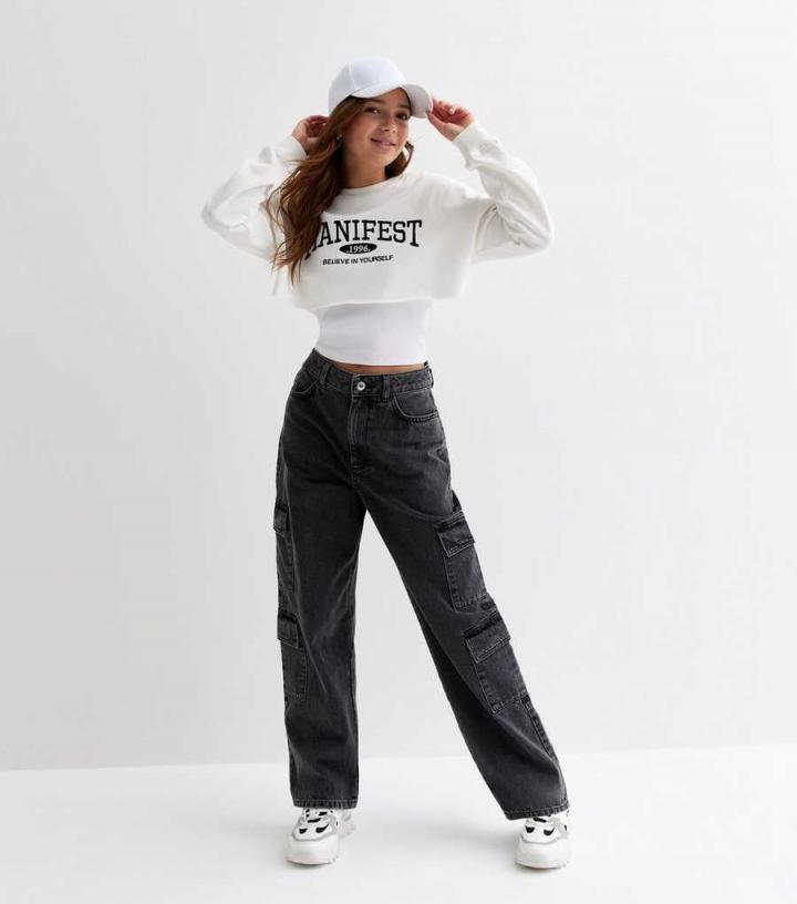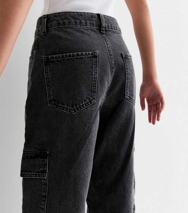 Denim | New Look Girls Black High Waist Wide Leg Cargo Jeans