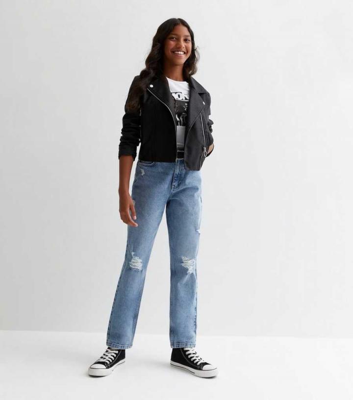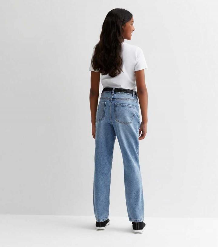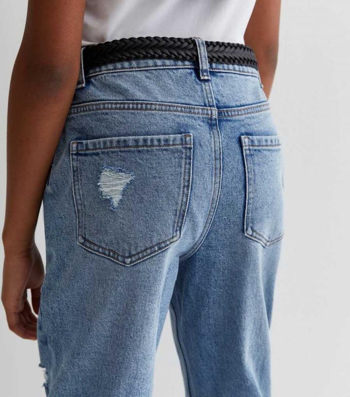 Denim | New Look Girls Blue Ripped Knee Belted Moira Mom Jeans