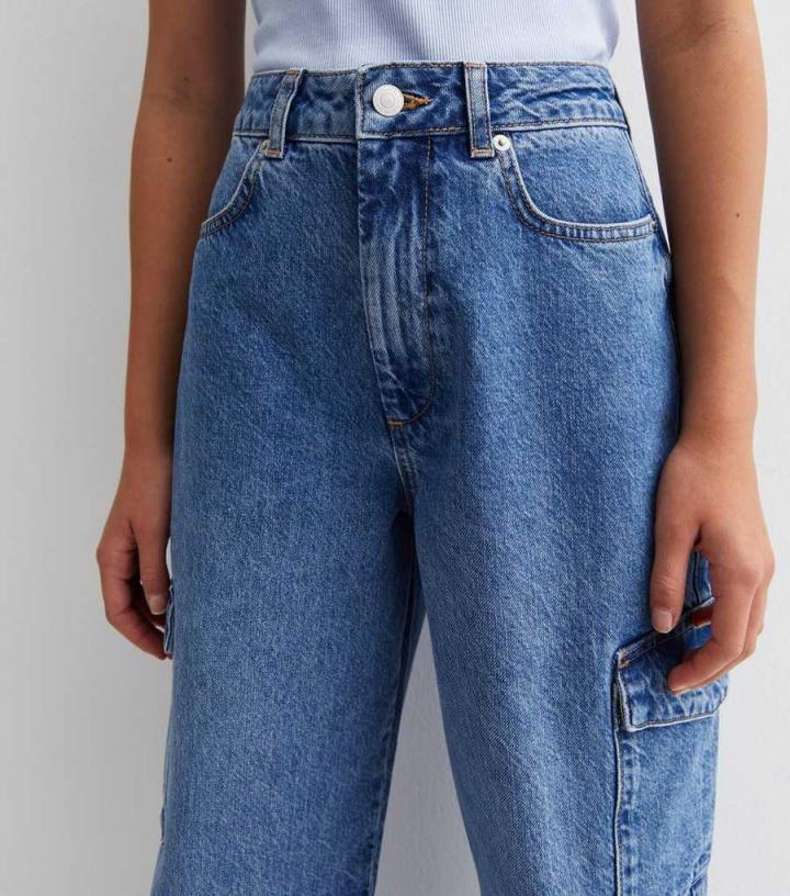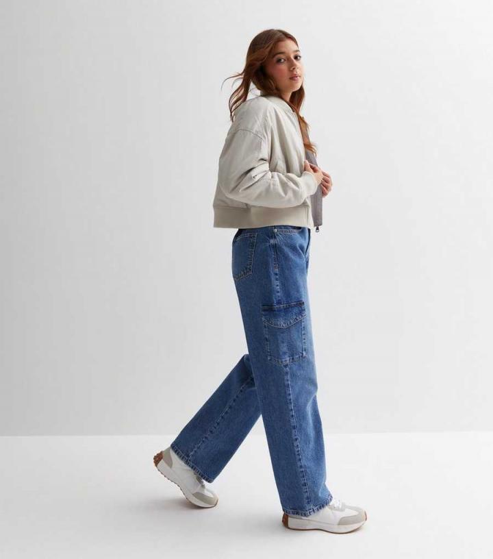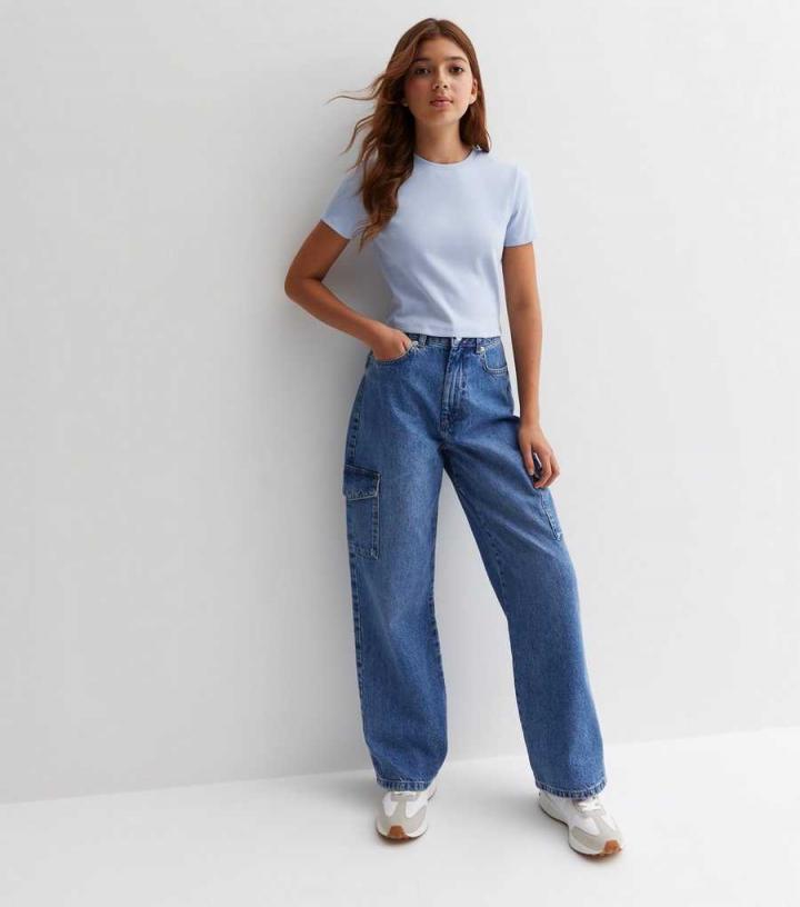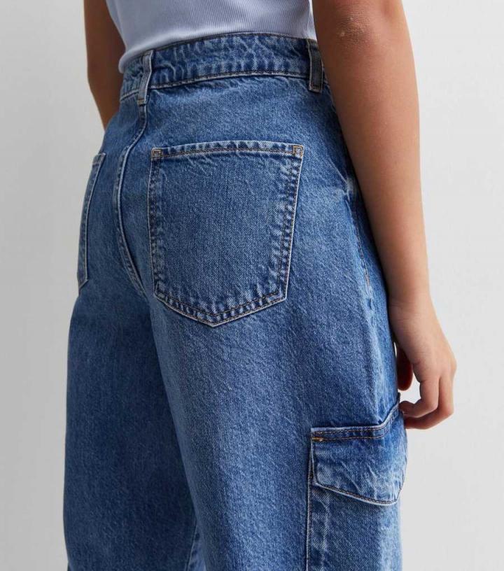 GirlsBlue Wide Leg Cargo Jeans New Look
