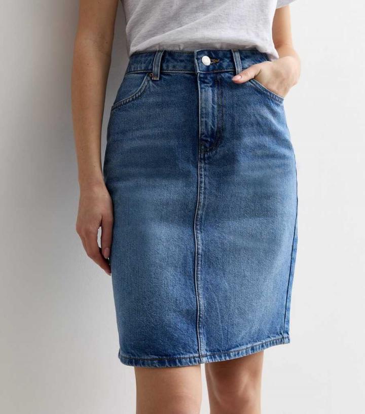 This knee-length cotton denim skirt is a classic silhouette to buy now and wear again (and regularly for the foreseeable future).
