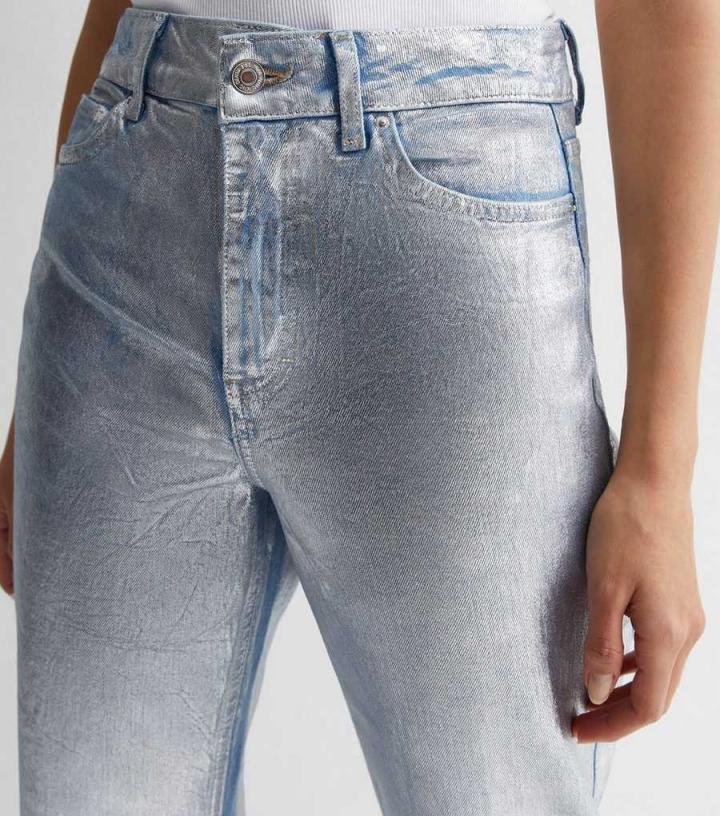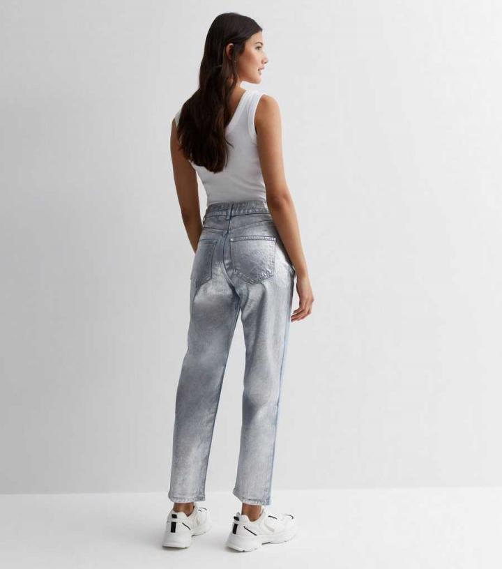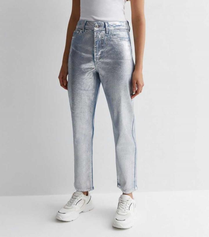 A metallic finish takes these blue mom Tori jeans to a new level, making them perfect for after-dark soirées or upcoming party plans.