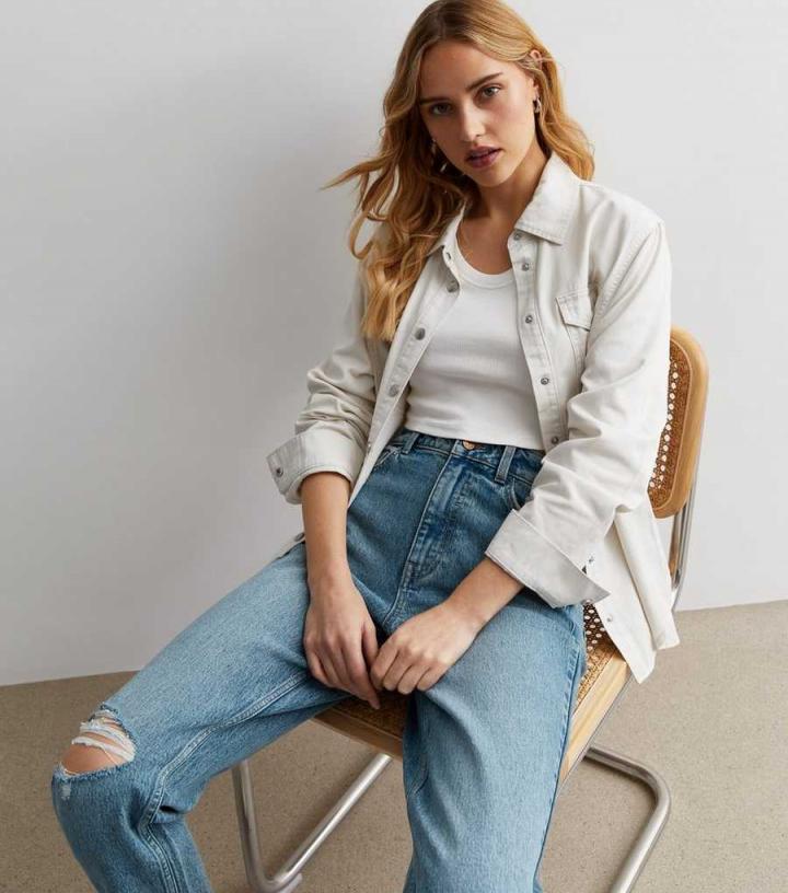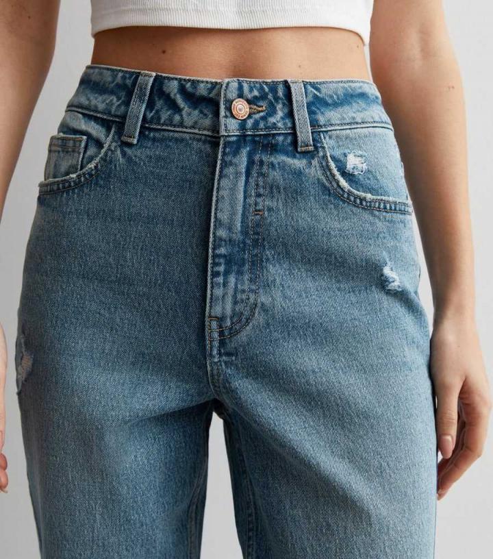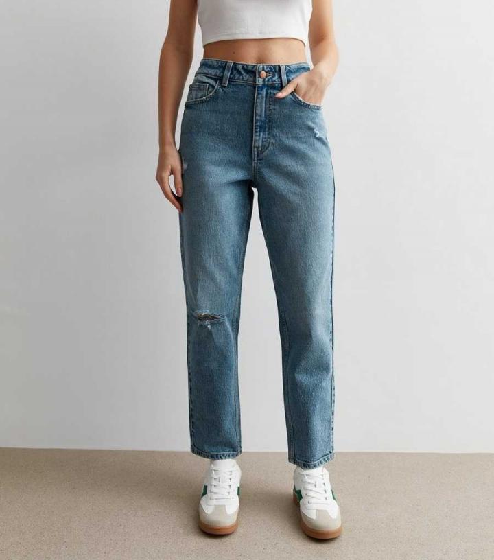 Denim | New Look Womens Blue Ripped Knee High Waist Tori Mom Jeans