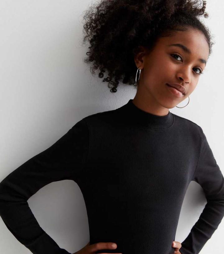 – High neckline- Long sleeves- Ribbed cotton blend- Mini length- Slim fit- Model is 5’0"/152cm and wears age 12-13/height 152-158cm