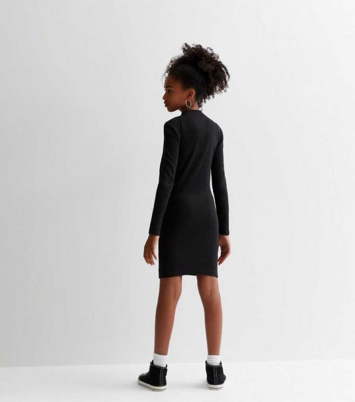 Girls. Perfect for every season, this black mini dress is crafted from a super-comfy ribbed cotton blend. Wear it on its own with chunky trainers, or throw it on with an oversized jacket during colder temps.