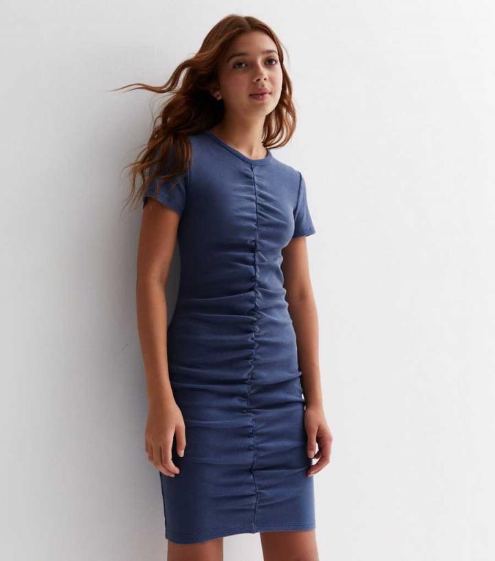 Girls. Its ruched front, flattering length and acid wash fabric make this blue mini dress perfect for your weekend plans. Just add trainers or boots and your fave autumn layer.
