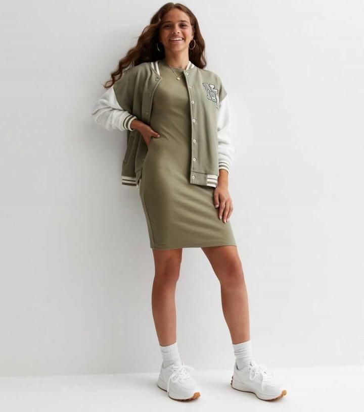 Dresses | New Look Girls Khaki Ribbed Capped Sleeve Dress