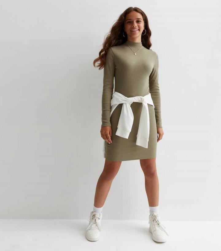 Dresses | New Look Girls Khaki Ribbed Long Sleeve High Neck Dress