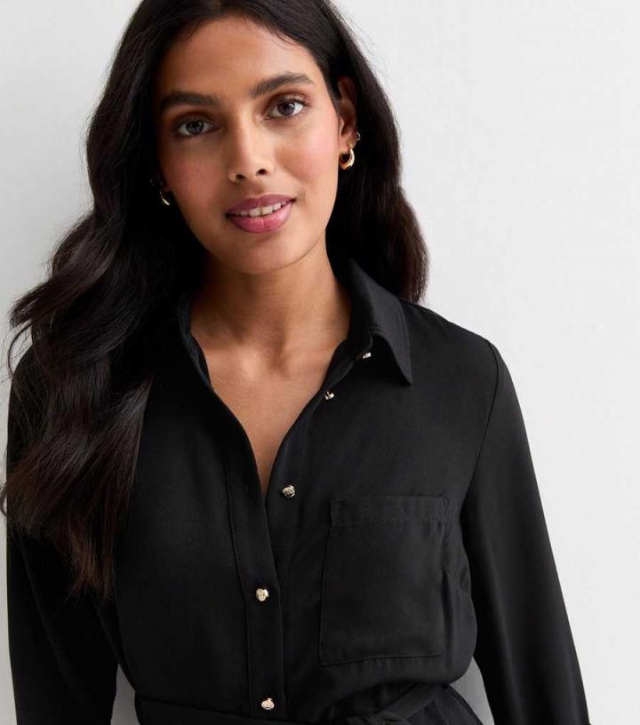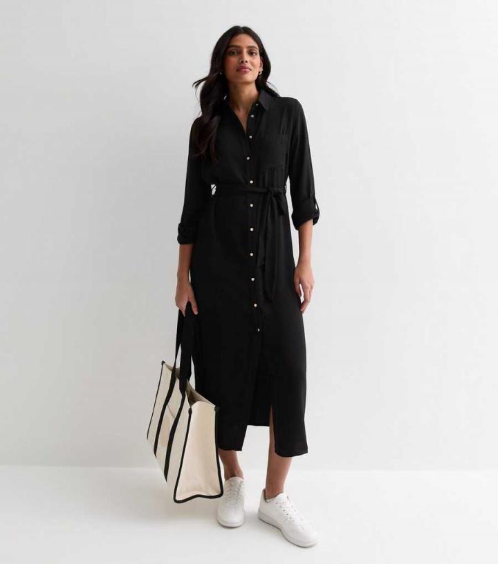 Classic in its shirt shape, this black midi dress works for a host of occasions. From weddings to party season and everything in-between, style it up with wedge heels and a clutch for an effortless look.