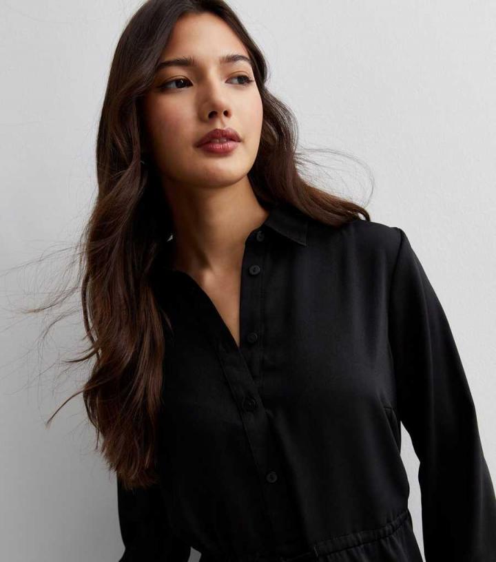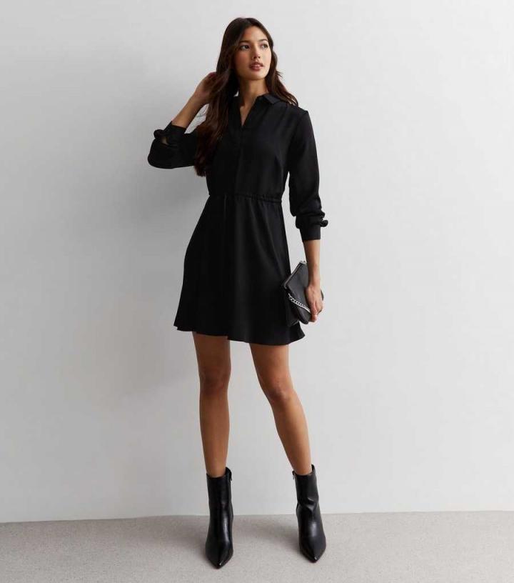 Dresses | New Look Womens Black Drawstring Mini Shirt Dress