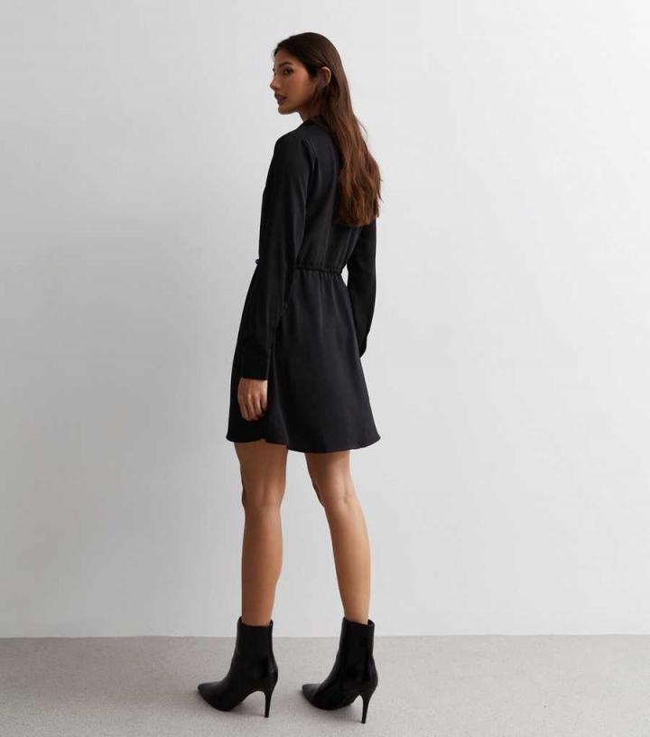 – Black- Collared neckline- Long cuffed sleeves- Drawstring waist- Mini length- Button-up fastening- Mini length- Soft lightweight fabric- Regular fit- Model is 5’8"/173cm and wears UK 10/EU 38/US 6