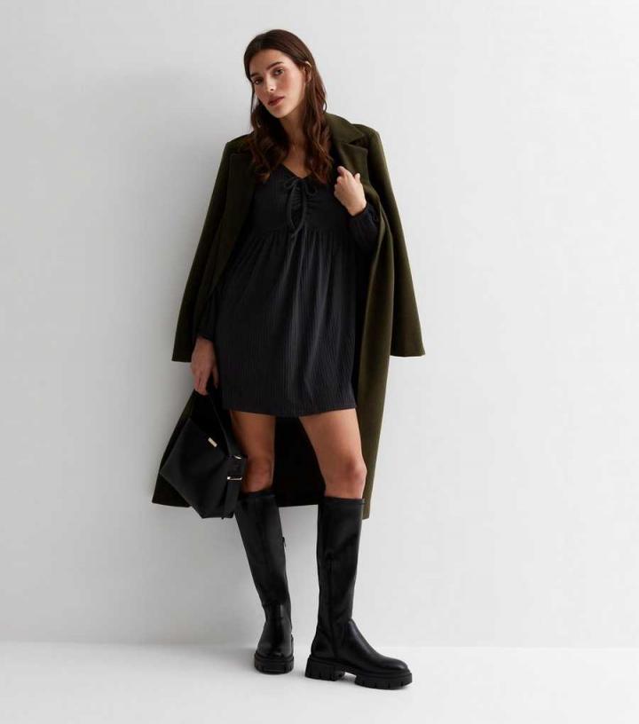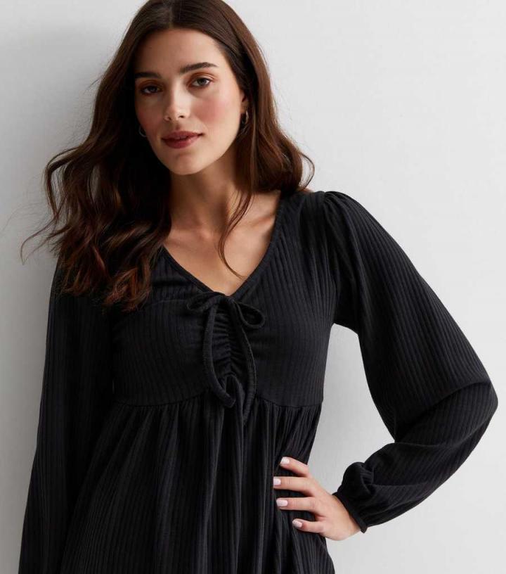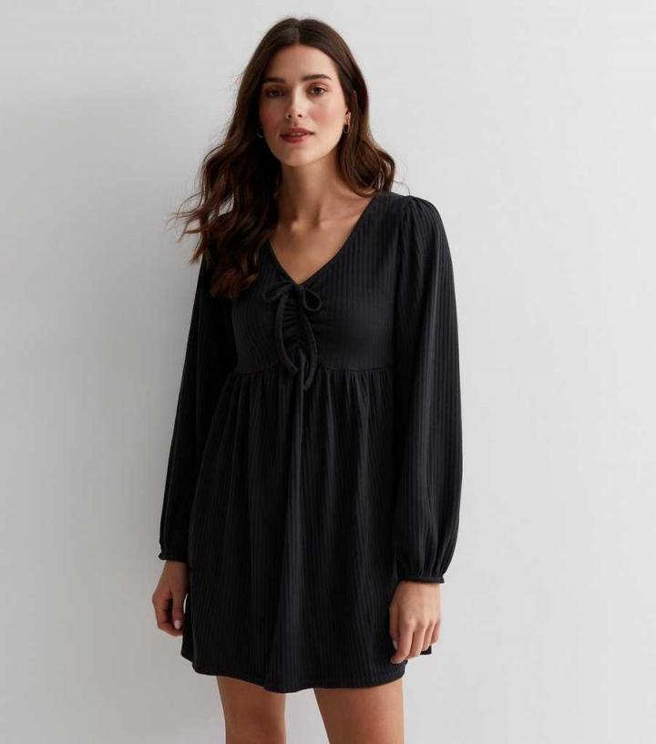 Dresses | New Look Womens Black Ribbed Jersey Tie Front Mini Dress