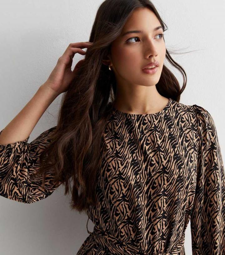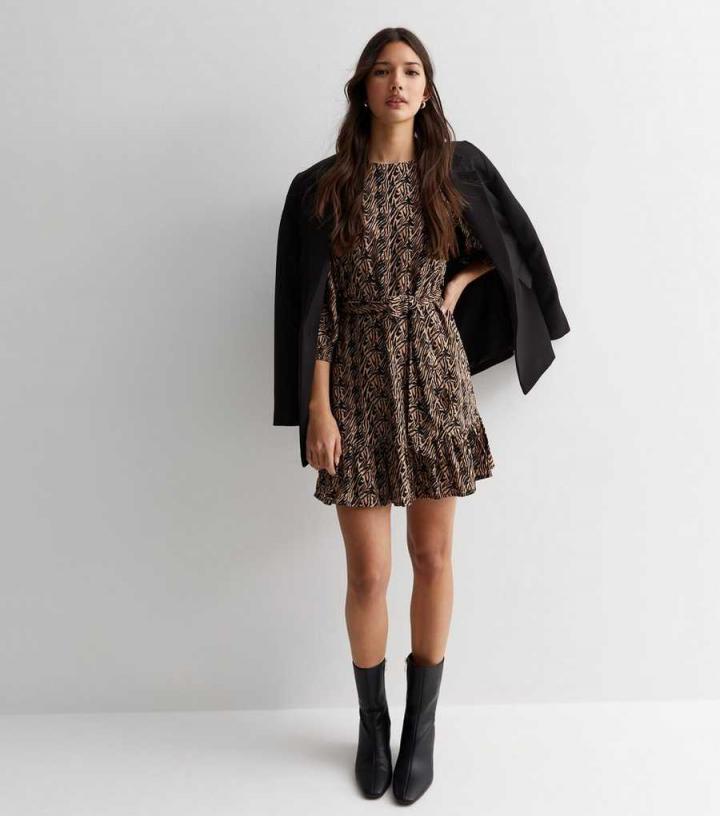 A must-have pick in your new-season rotation, this brown dress is decorated with a statement animal print and flattering belted waist. For an instant autumn-ready fit, team with knee-high boots and a teddy coat.