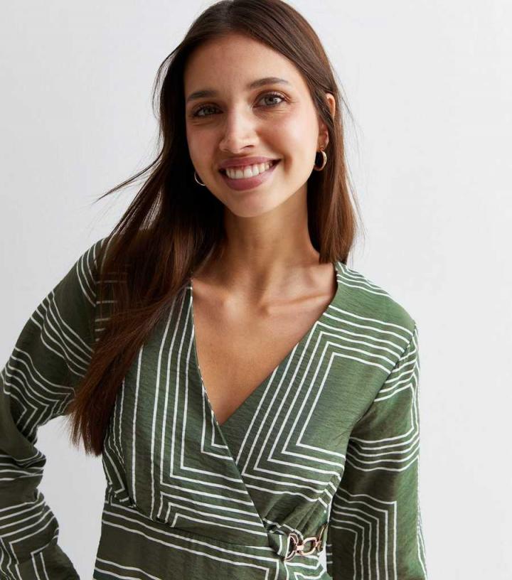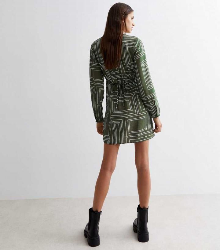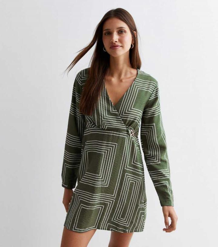 Dresses | New Look Womens Green Square Print Wrap Buckle Mini Dress
