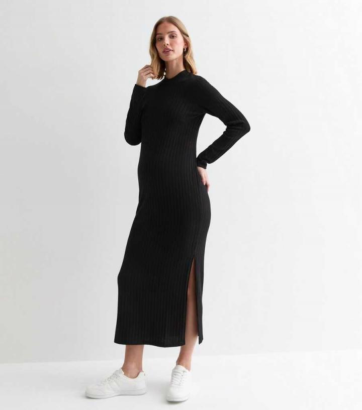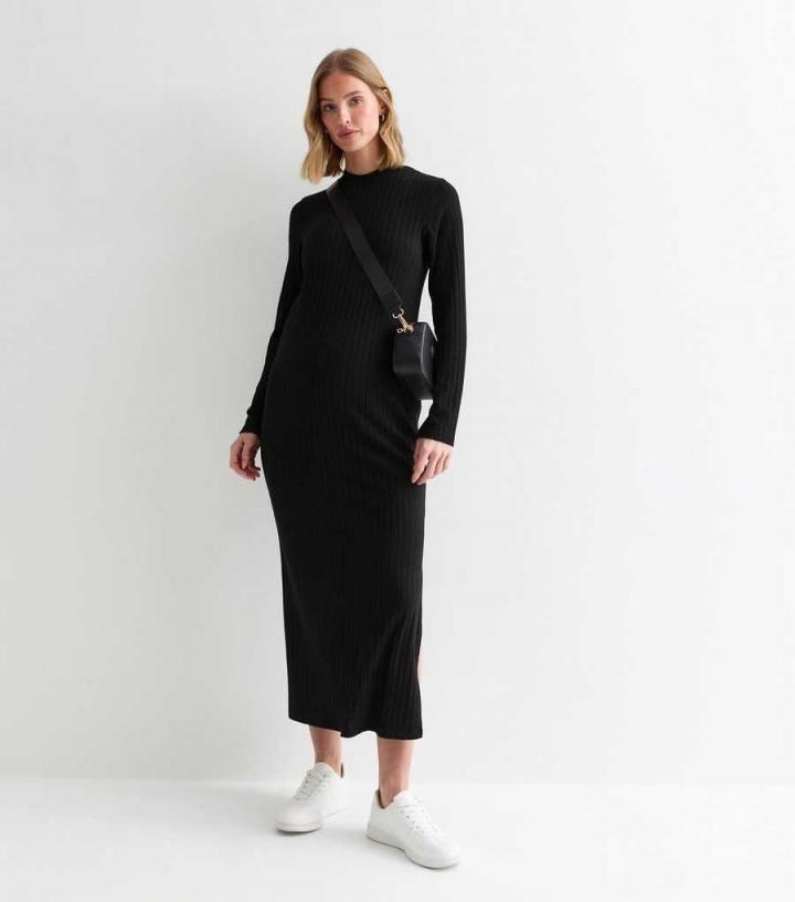 Maternity. Cut to a midi length and designed in a neutral colorway, this black dress will take you from work days to dinner plans in style. With a ribbed knit finish, it’s a cosy pick during the cold seasons.