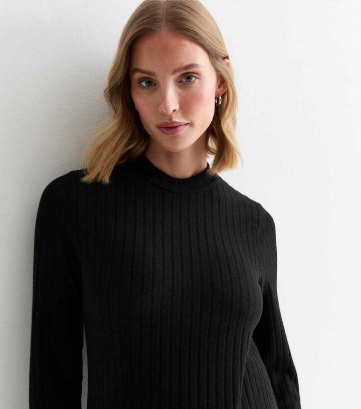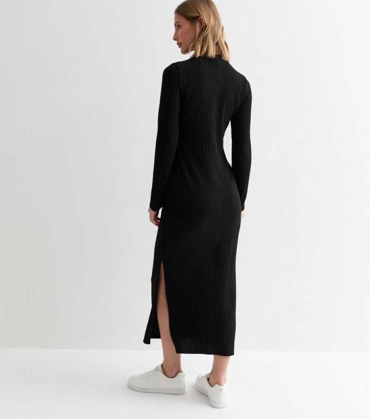 – Online exclusive- Black- High neckline- Long sleeves- Side split hem- Midi length- Ribbed knit fabric- Regular fit- Model is 5’8"/173cm and wears UK 10/EU 38/US 6
