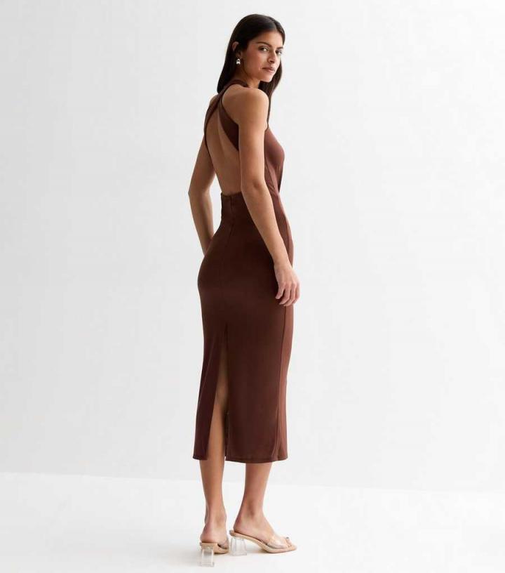 Designed with a rear split hem and cross-back that guarantees an unforgettable exit from any event, this rust midi dress is a wardrobe winner.