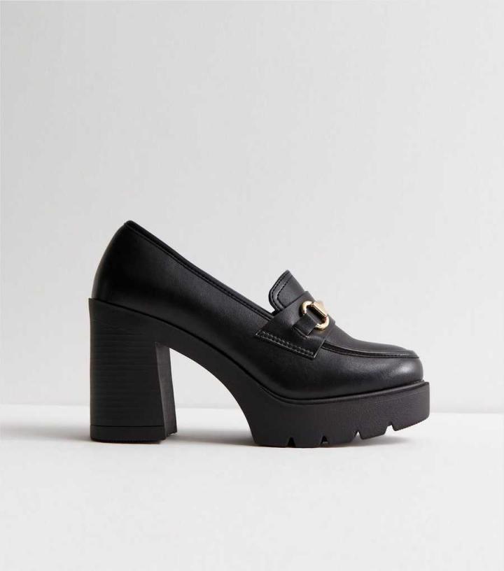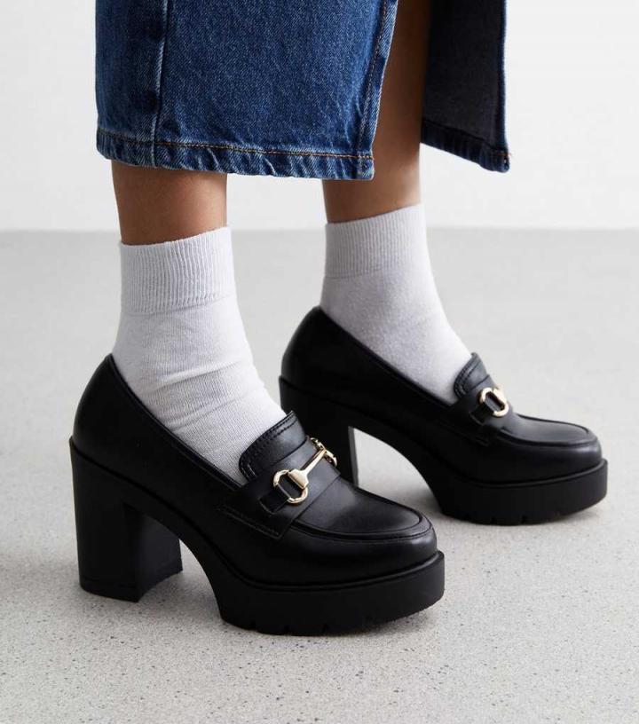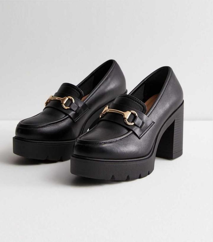 With their chunky design and block heel, take your outfits to new heights in these black loafers.