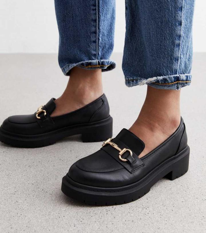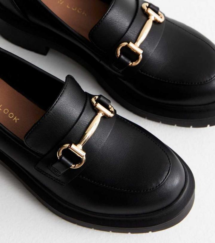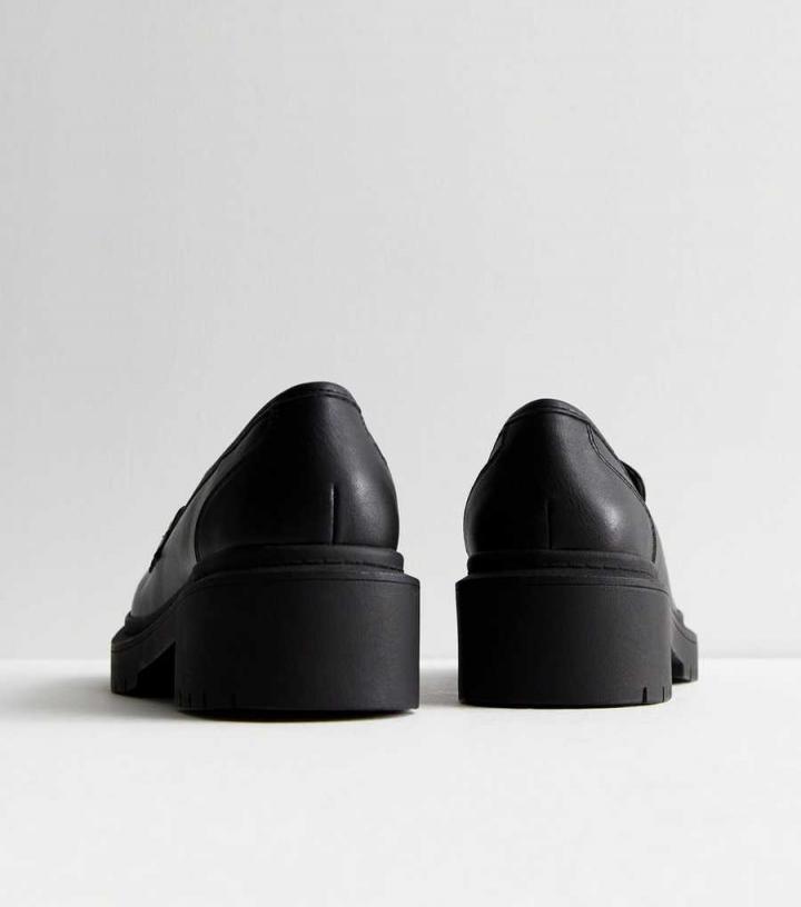 Flats | New Look Womens Black Leather-Look Chunky Loafers