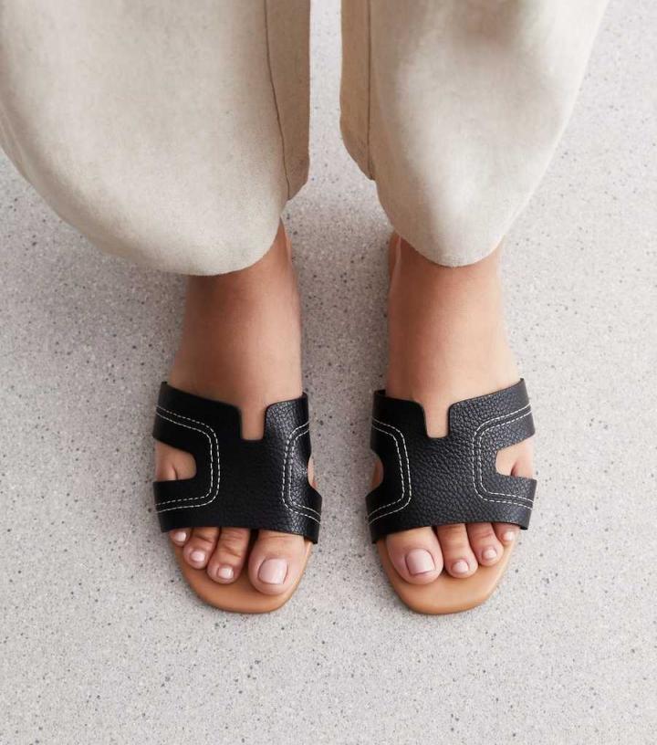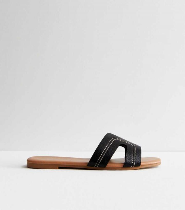 Sun shining? Slip into these black leather-look sliders, then just add your fave warm-weather dress.