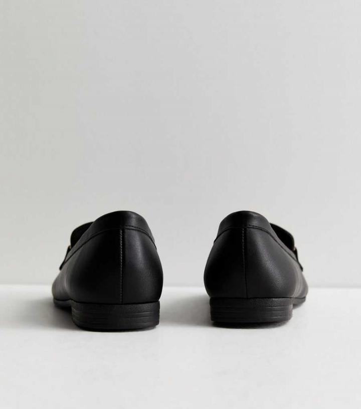 Flats | New Look Womens Black Leather-Look Snaffle Trim Loafers