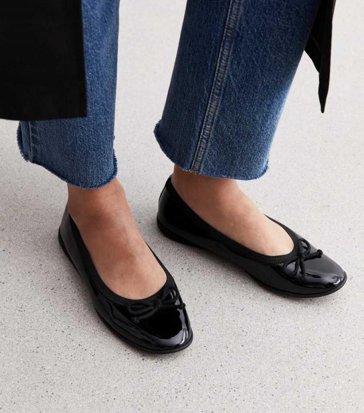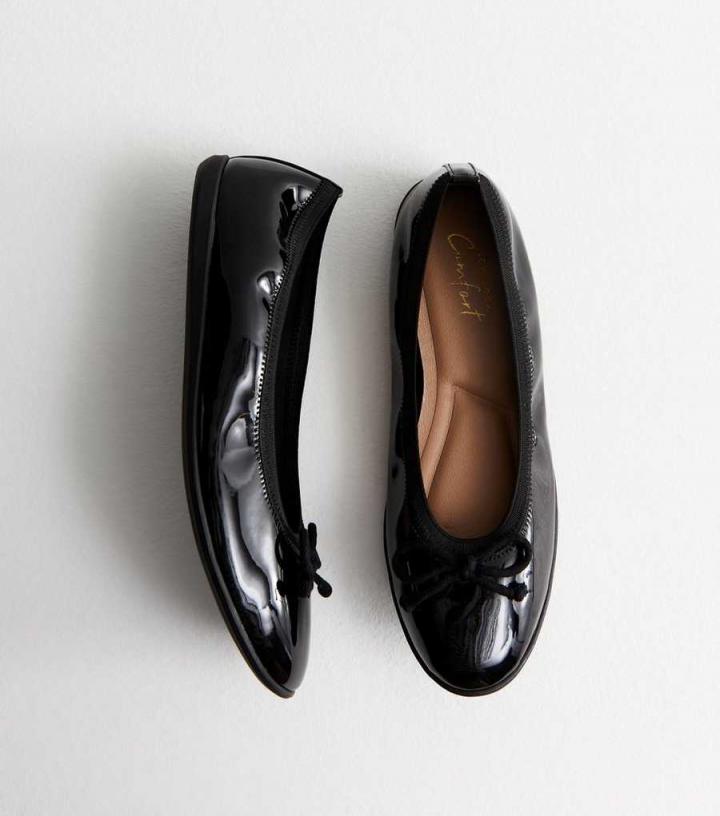 Flats | New Look Womens Black Patent Ballerina Pumps