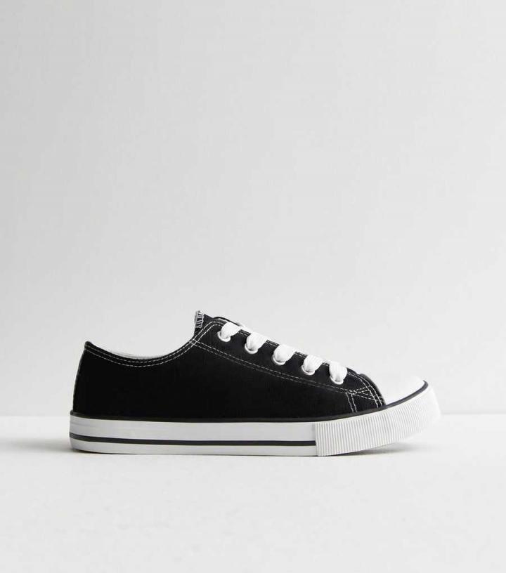 Not-so-basic basics? We’re talking about these black canvas trainers that combine comfort with cool.- Wide fit- Extra measure across the insole, joint and instep- Canvas finish- Rounded toe- Lace-up fas…