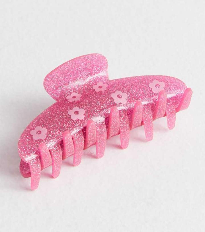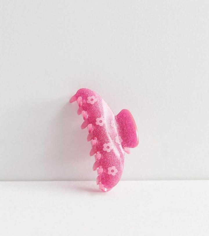 Hair Accessories | New Look Girls Bright Pink Glitter Resin Flower Bulldog Hair Clip