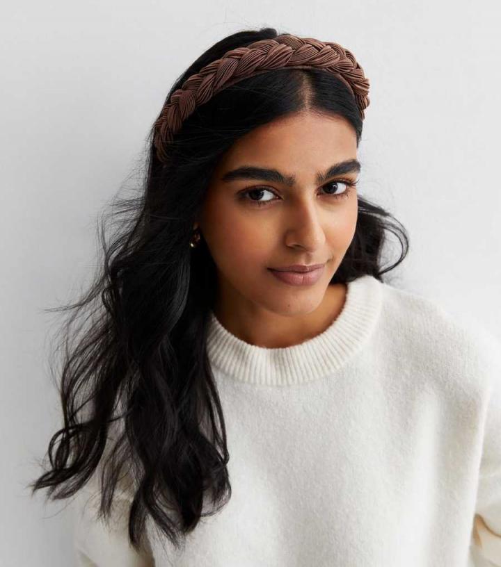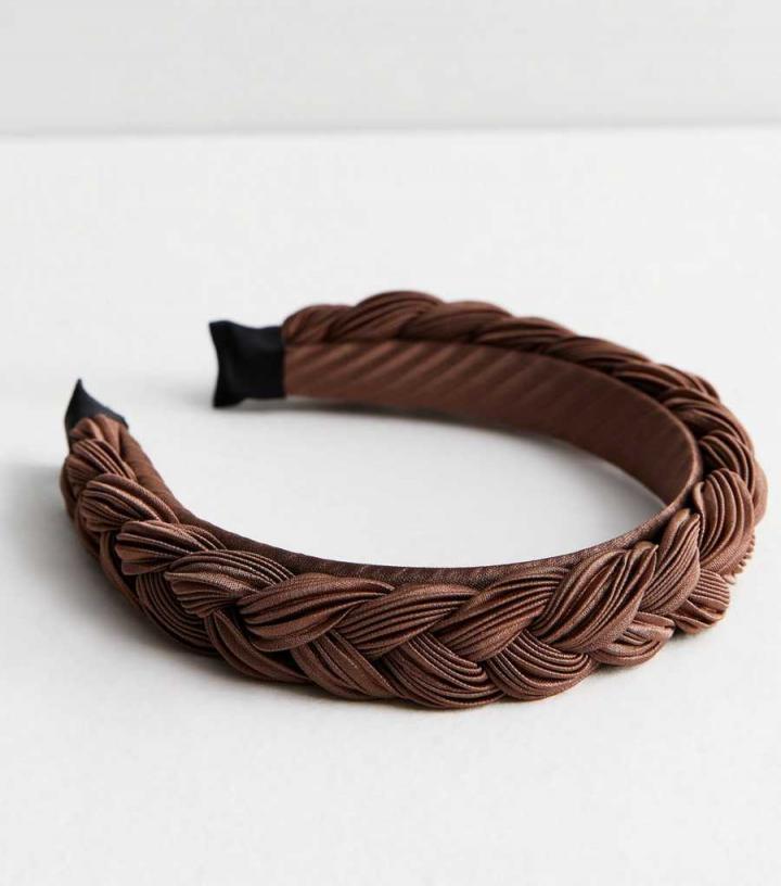 Hair Accessories | New Look Girls Mid Brown Plissé Plaited Headband