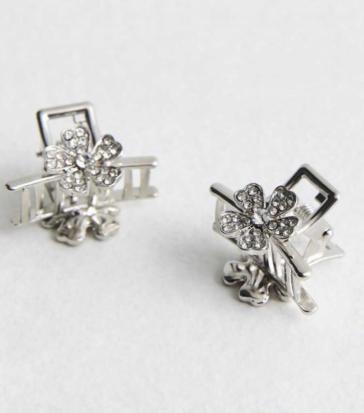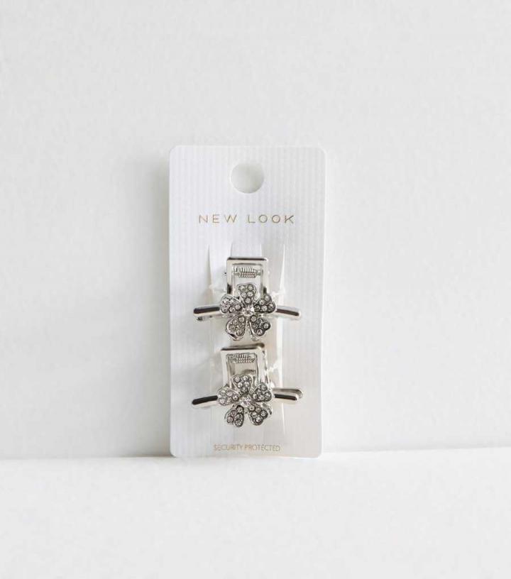 – 2 hair clips included- Silver- Metal finish- Flower design- Diamanté embellishment- Clip-in- Mini size