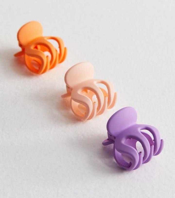 – Pale peach/orange/purple- Matte finish- Hinge fastening- Claw clip design- Small size- 3 pack