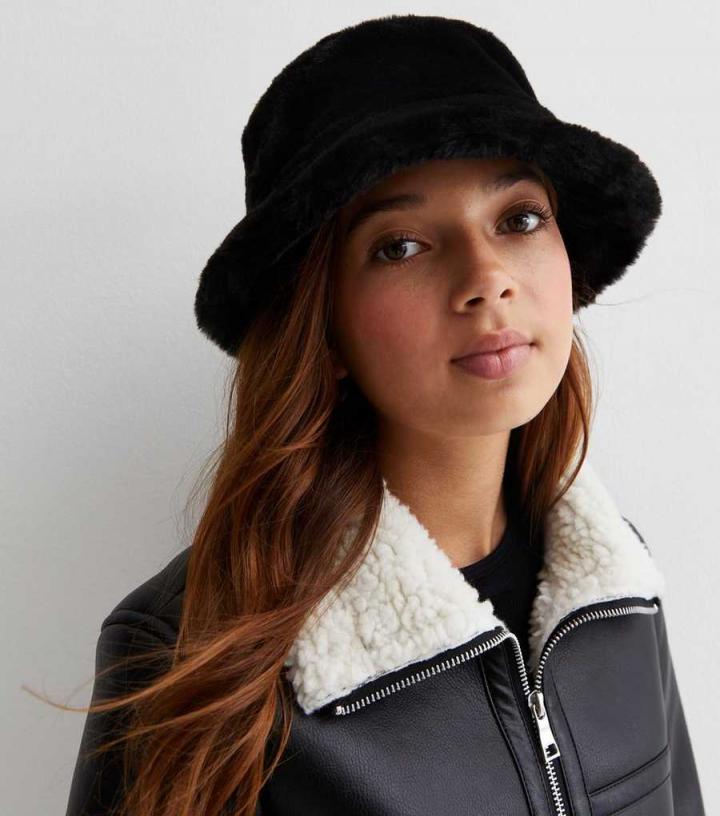 Hats | New Look Girls Black Faux Fur Bucket Hat