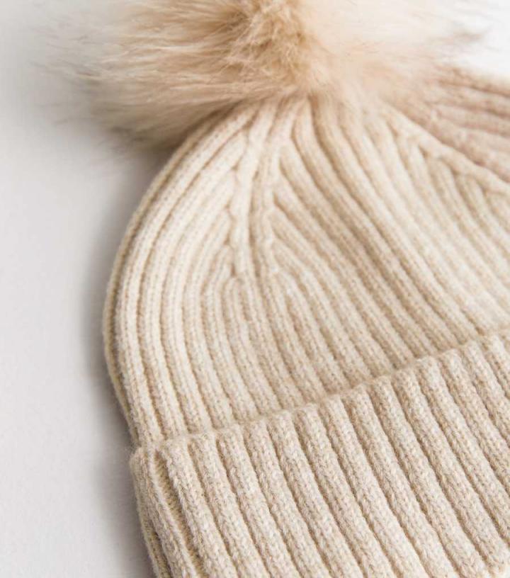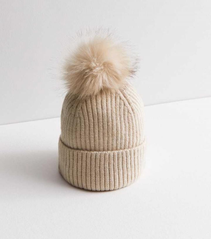Hats | New Look Girls Cream Ribbed Pom Pom Bobble Hat