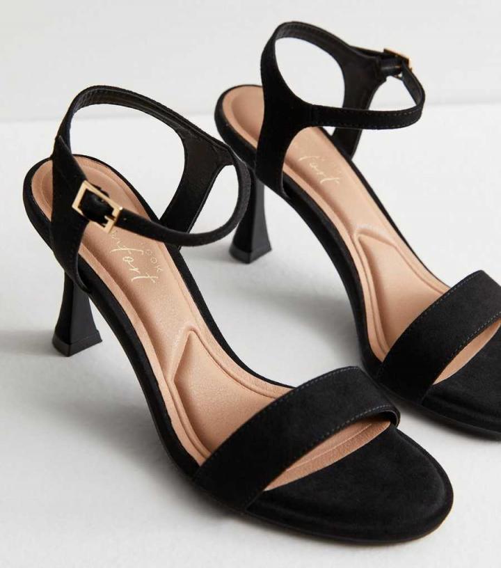 Striking the balance between comfort and style, these black stiletto sandals are designed with cushioned underfoot padding and a soft suedette finish.