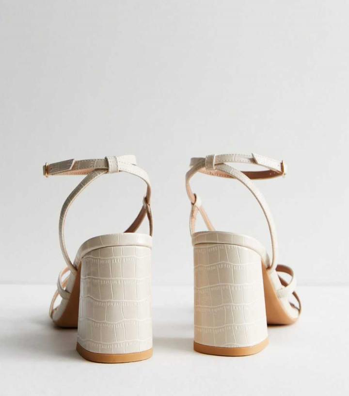 – Off white- Leather-look finish- Strappy design- Faux croc pattern- Ankle strap fastening- Block heel- Heel height: 3" / 8cm