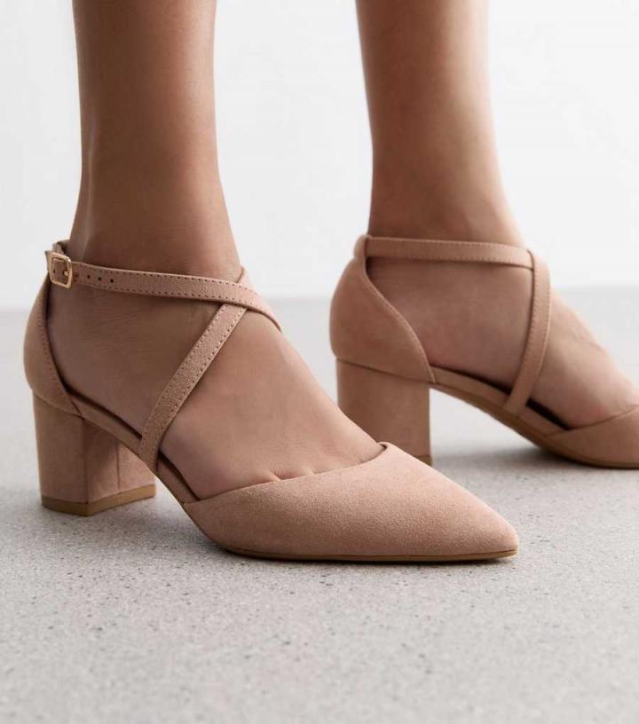 Gold-tone details and a pointed toe give these light pink suedette court shoes a sophisticated touch.